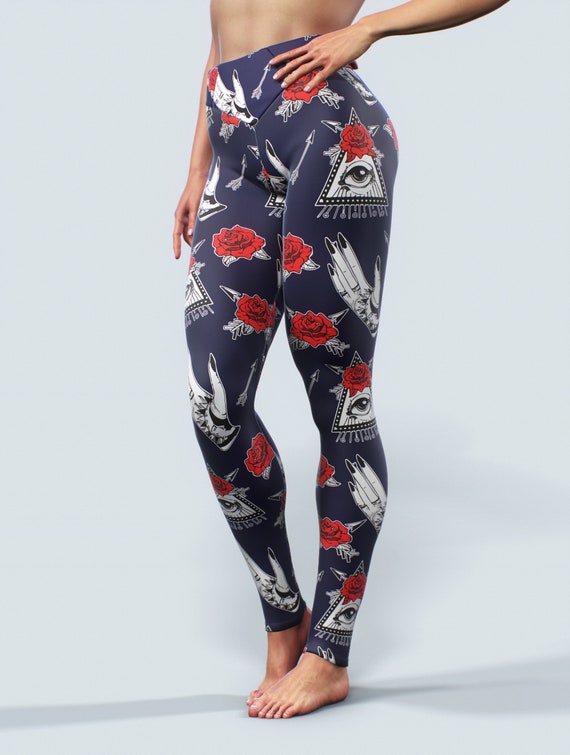 Punk Tattoo Leggings Grunge Illuminati Eye Roses Yoga Pants Etsy Uk